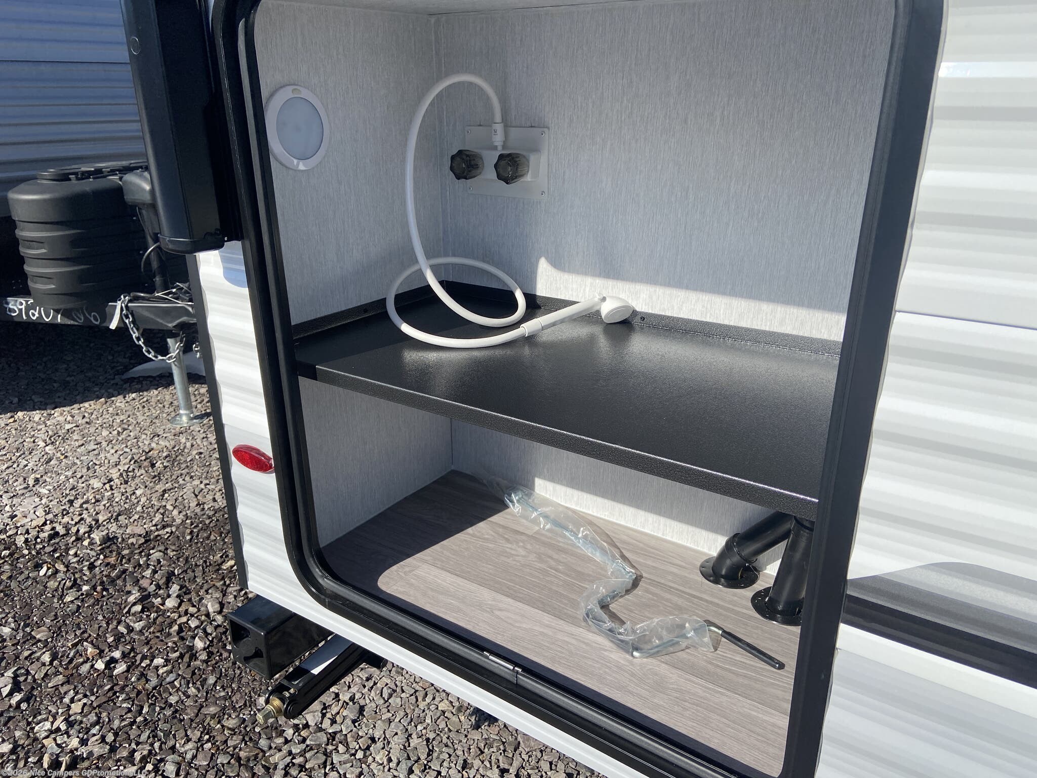 Construction: Built on a powder-coated steel chassis with Spring-Leaf Dexter Axles and front/rear stabilizer jacks.