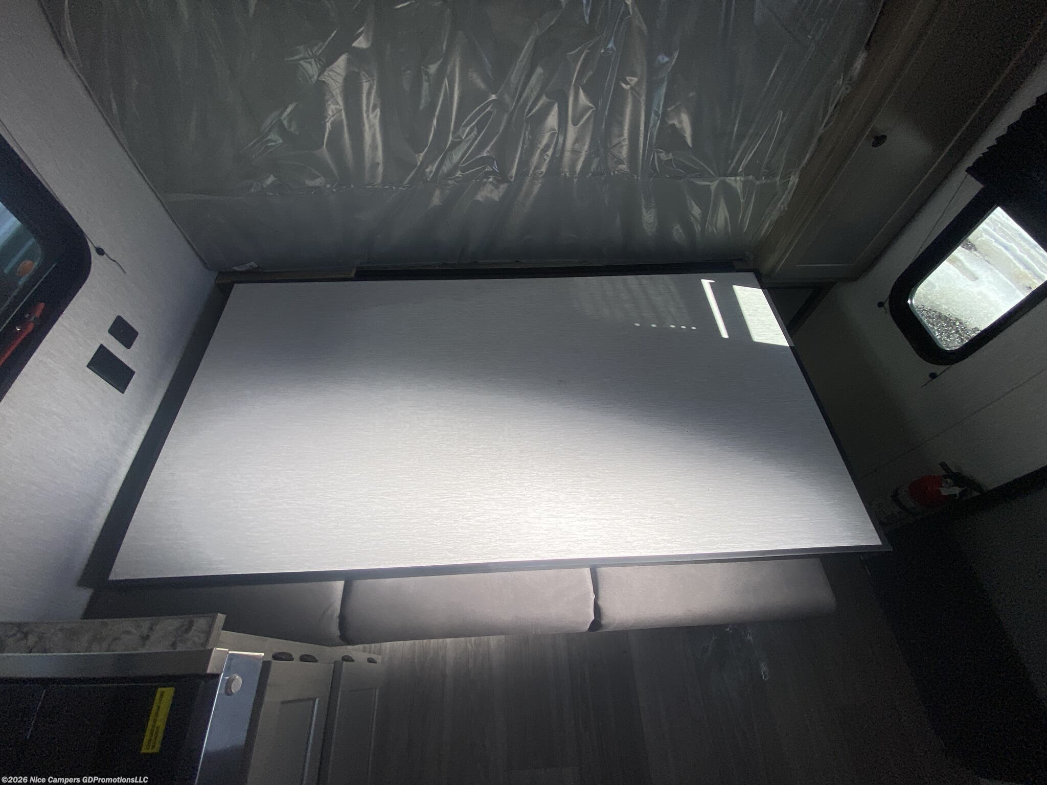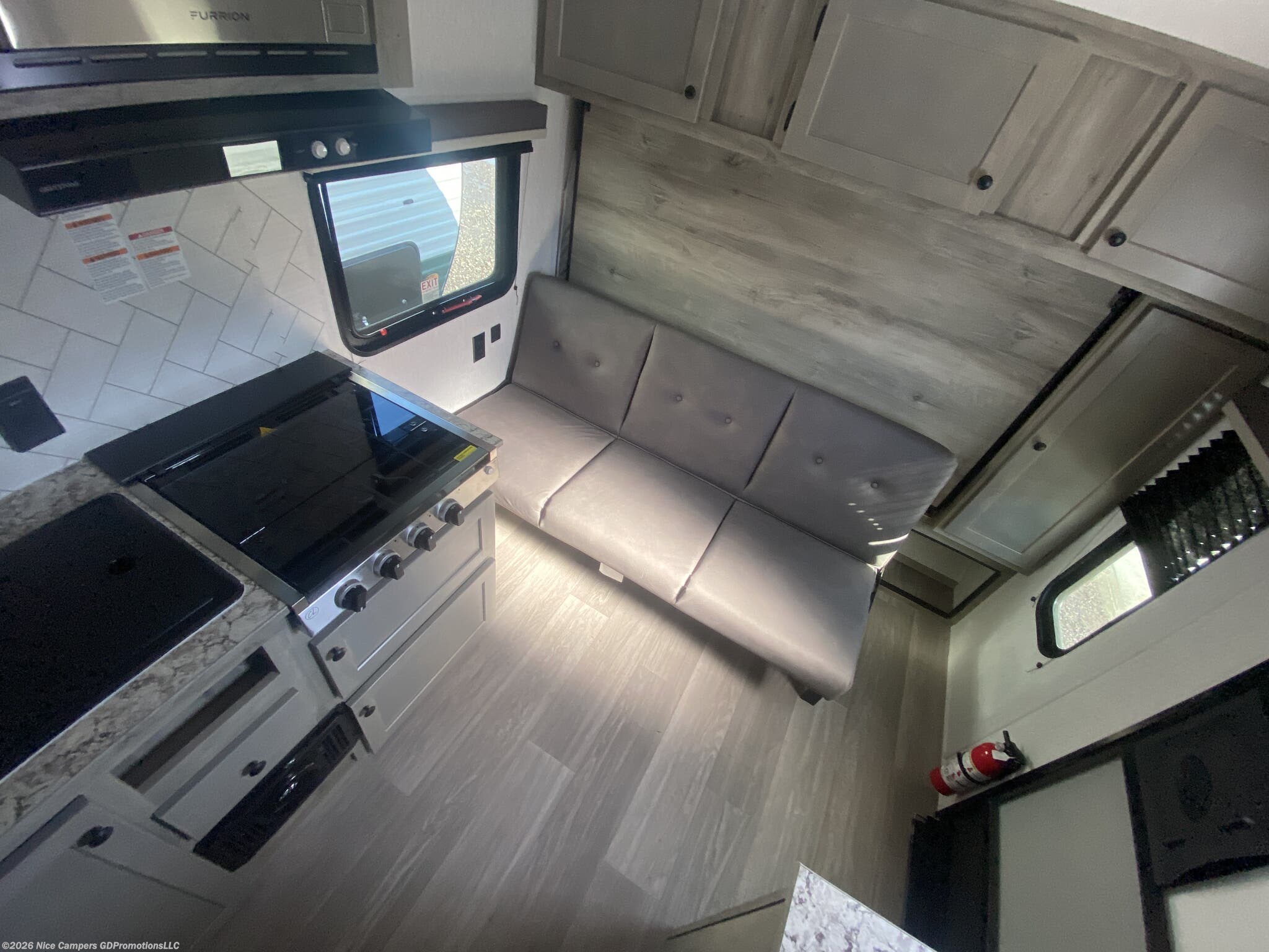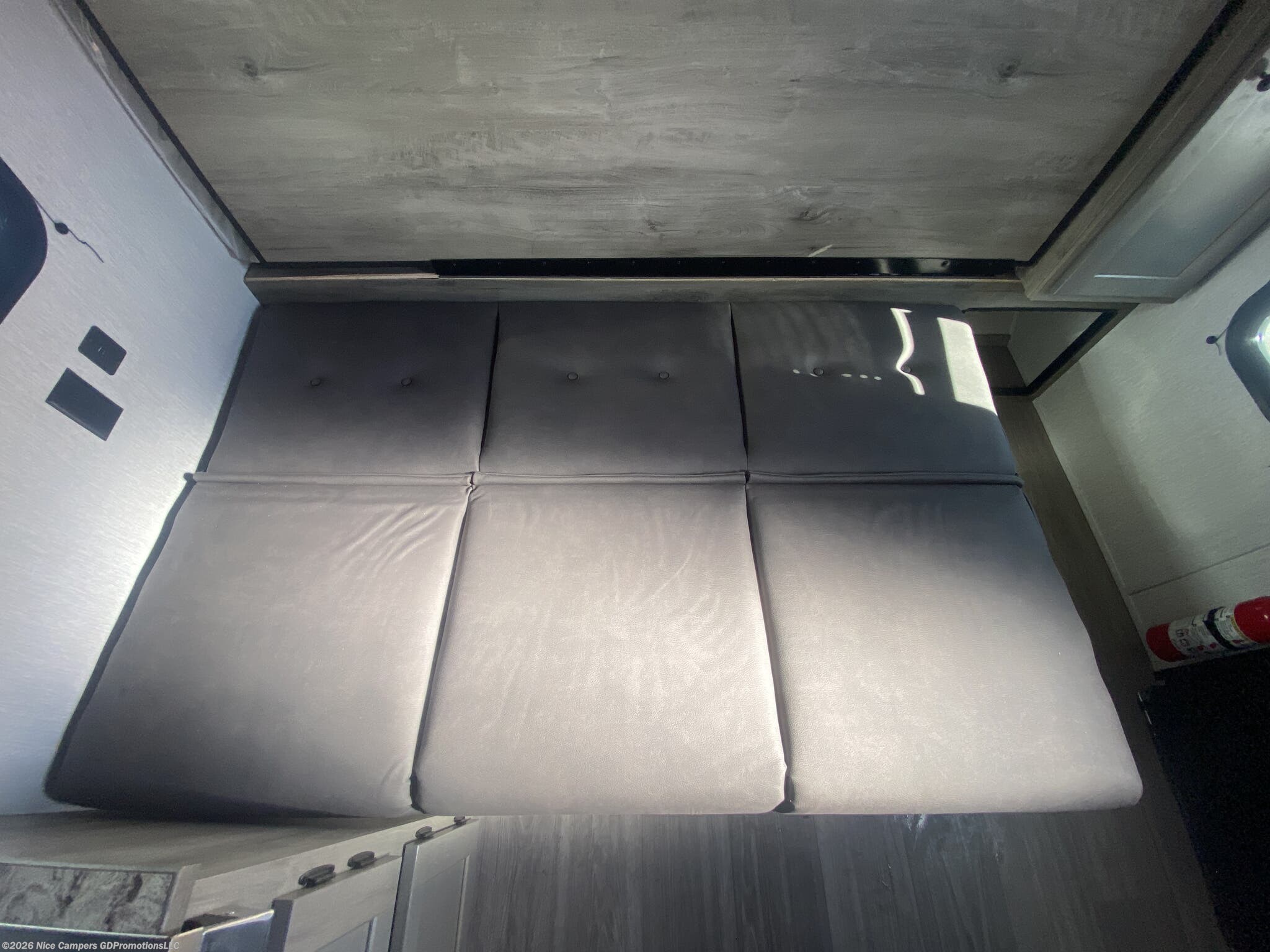 Utilities: It comes with a 13.5K BTU roof-mounted A/C, a furnace with auto-ignition, a 6-gallon DSI gas water heater, and two 20 lb LP tanks.