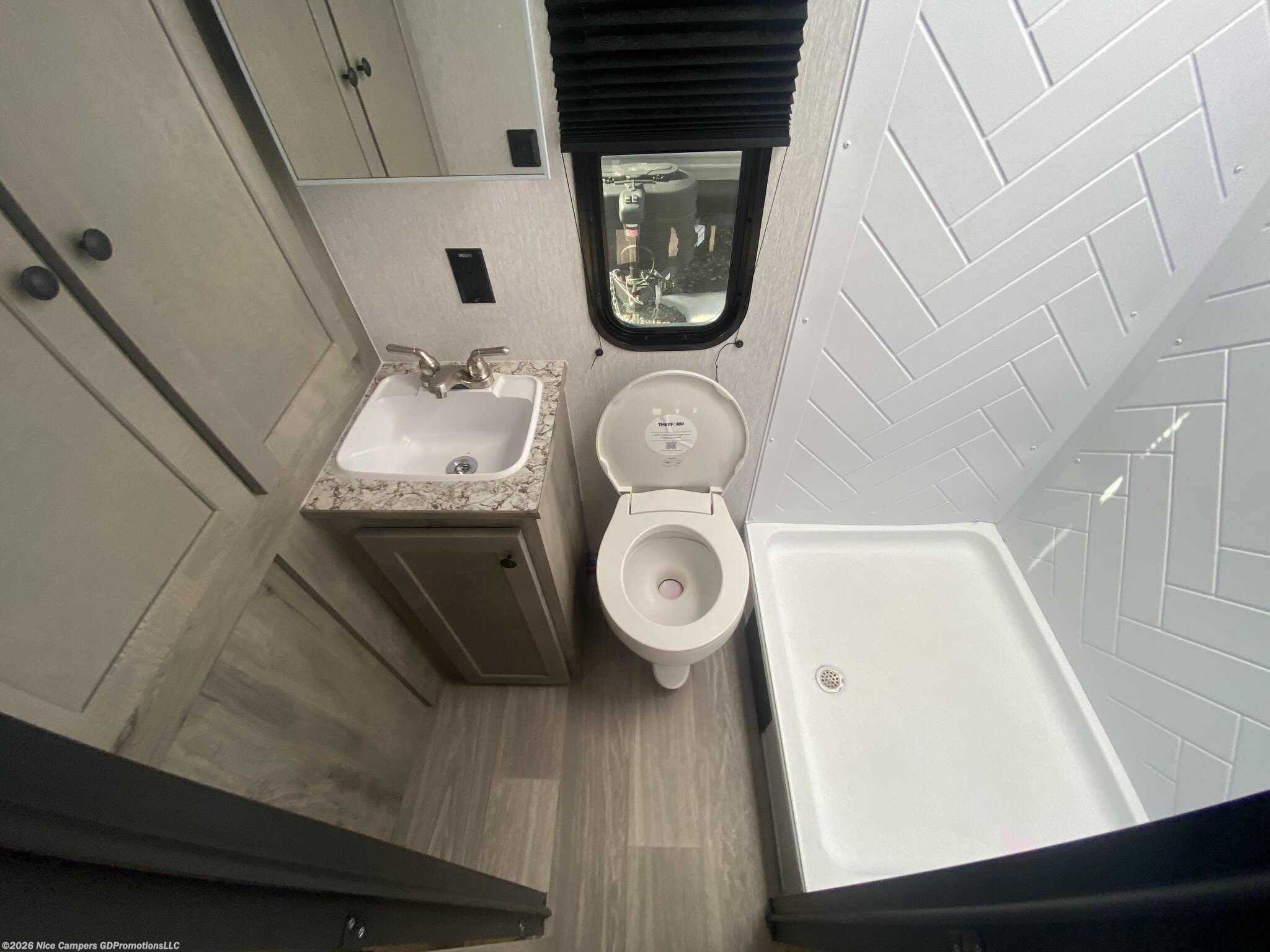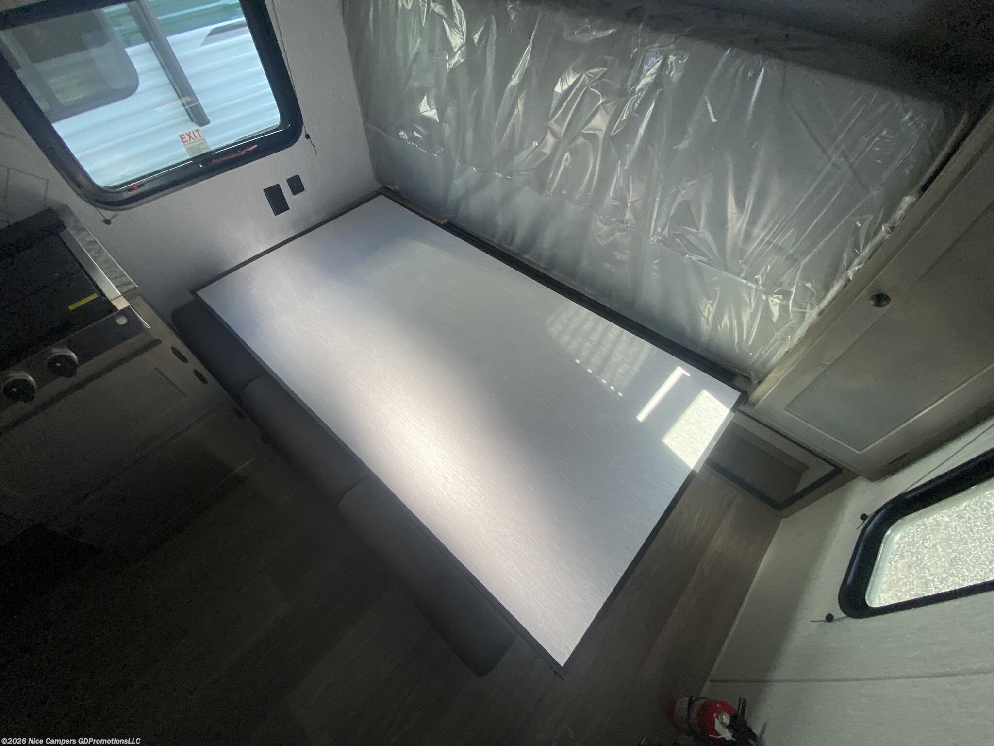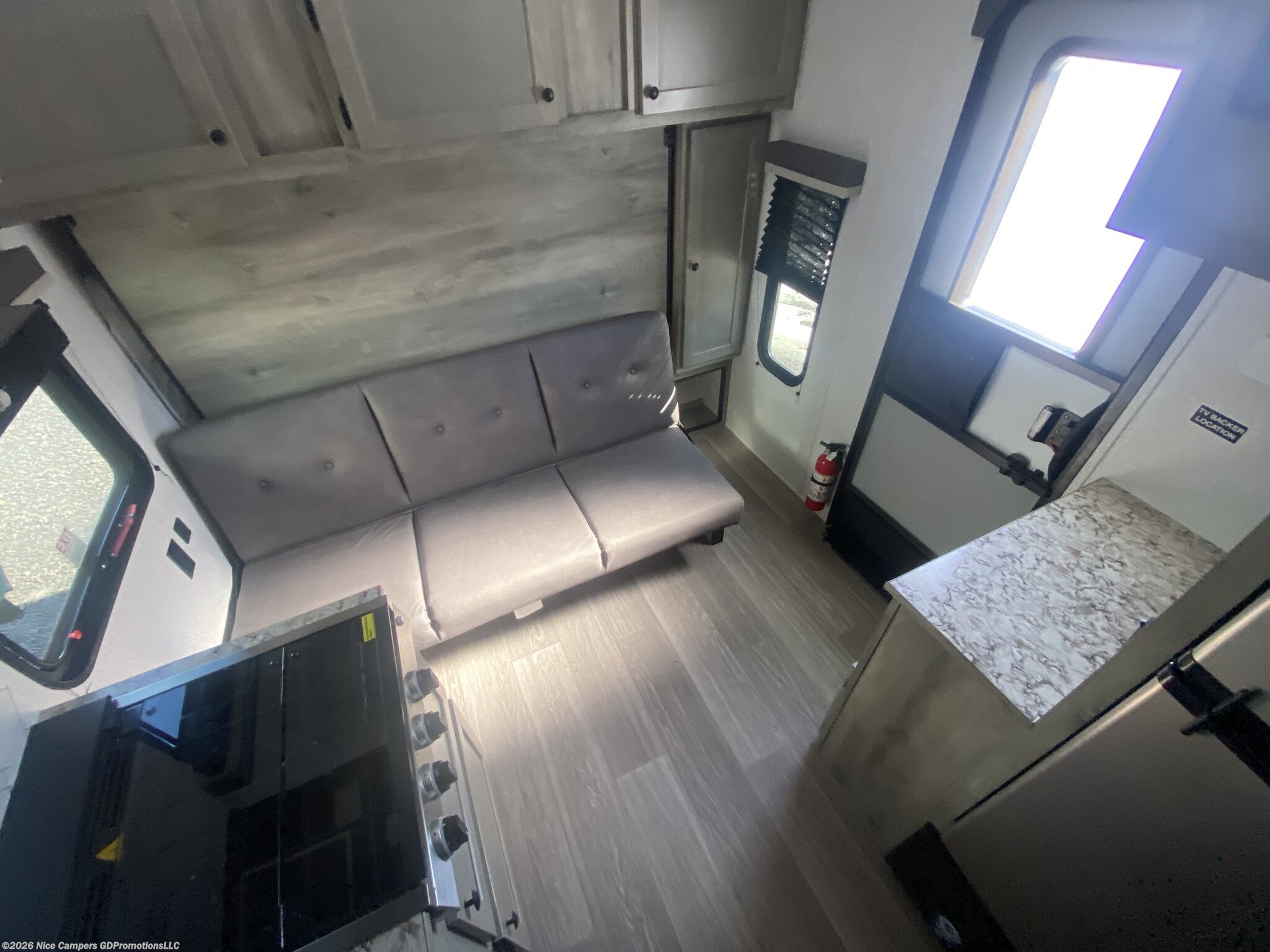 Utilities: It comes with a 13.5K BTU roof-mounted A/C, a furnace with auto-ignition, a 6-gallon DSI gas water heater, and two 20 lb LP tanks.